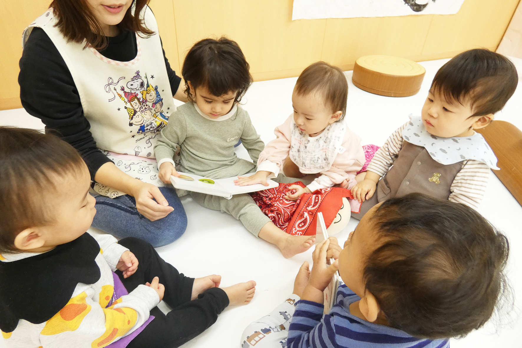 今月はひよこ組のお泊りの様子をお伝えします。夕食後順番にお風呂に入り、ドライヤーをかけてさっぱりした後は寝るだけのまったり時間となります!入眠するまでの時間は保育者と十分な触れ合い時間にしています。おもちゃ入れの棚の陰に隠れて「いないいないばあ」をしてみたり、順番に抱っこをしてユラユラを楽しんだり、「まてまてごっこ」をしてみたりと、色々な遊びをして過ごします✨19時半になると、皆でおもちゃを片付けて絵本の時間となります。並んで座ってたっぷり絵本を楽しんだ後、「おやすみなさい」の挨拶をして布団に入り、電気を消します。まだまだ遊び足りない気持ちの子もいれば、沢山遊んですぐに眠りにつく子等様々ですが、20時頃にはみんな夢の世界へ。