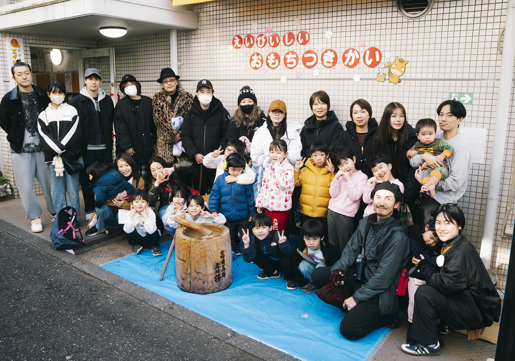 1月17日(土)天候にも恵まれ、エイビイシイ保育園本園玄関にてお餅つき会が行われました。